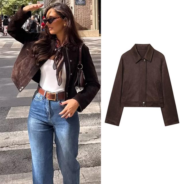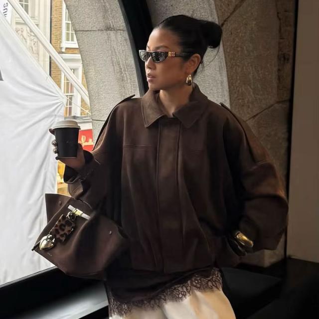 Hh New Womens Autumn Causal Loose Suede Texture Jackets Long