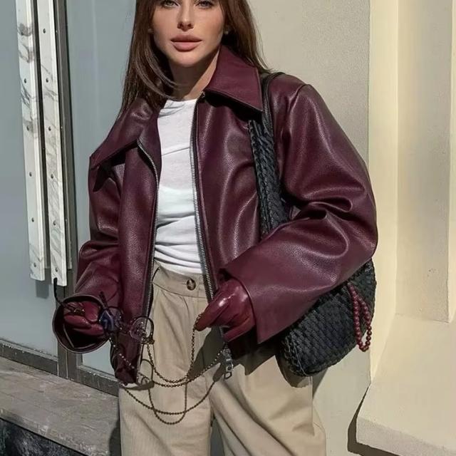 Fashionable Chic New Autumn Jacket Retro Lapel Pu Leather Zipper