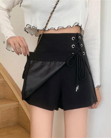 Plus Size Women Shorts Design Bandage Asymmetrical Solid High
