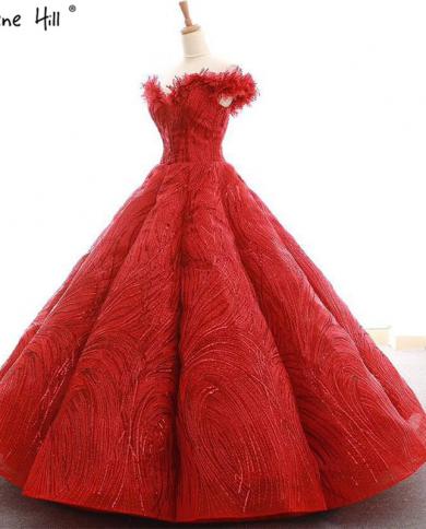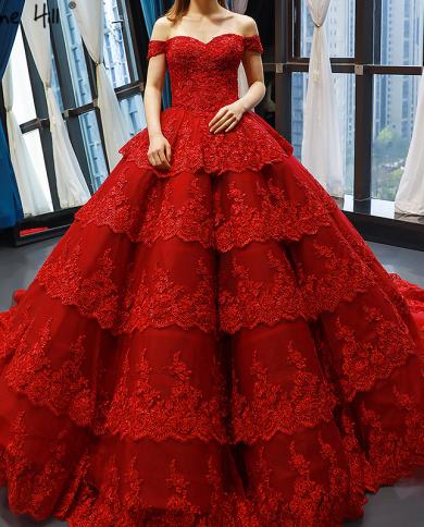 Latest Red Off Shoulder Wedding Dresses Design Handmade