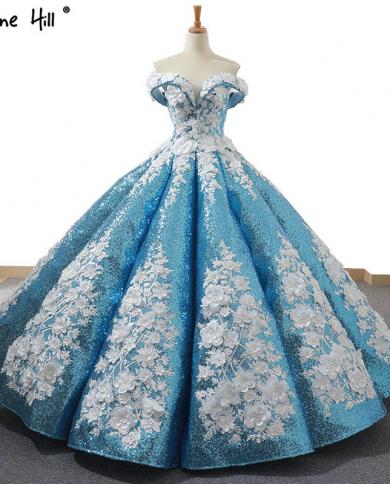 Off Shoulder Highend Blue Bridal Wedding Dress New Sleeveless