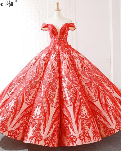 New Vintage Red Highend Embroidery Wedding Dress Off Shoulder