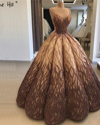 Gold Brown Dubai Design Wedding Dress Sleeveless Pearls