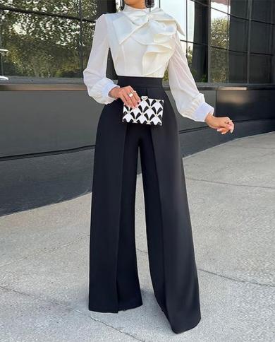 Wefads Women Two Piece Set Autumn Fashion Solid Temperament Bow