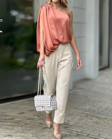 Wefads Women Two Piece Set Casual Fashion One Shoulder Solid