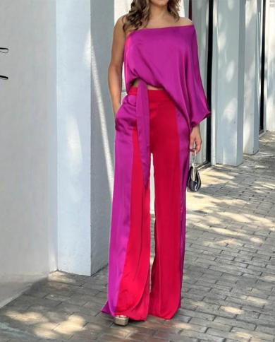 Satin Two Piece Set Pants Top Two Piece Women