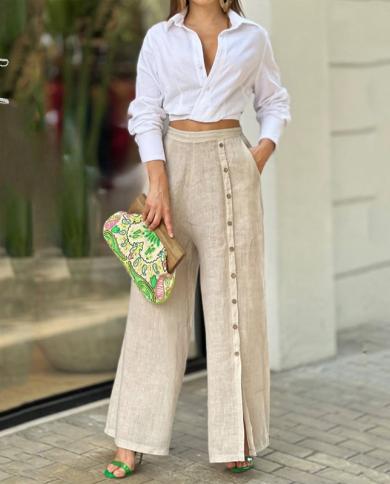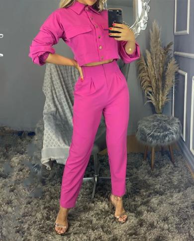 Wefads Women Two Piece Set Casual Lapel Solid Single Breast