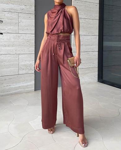 Wefads Women Two Piece Set Summer Fashion Solid Halterneck Sleeveless
