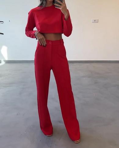 Wefads Women Two Piece Set Autumn Casual Long Sleeve Solid