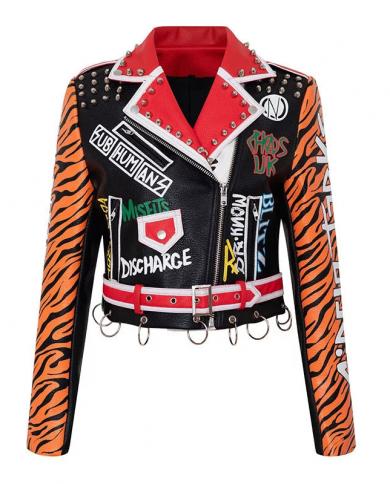 Autumn Fashion Tiger Embroidery Leather Jacket Women Hip Hop Letter
