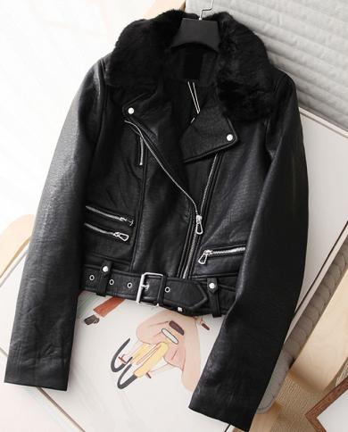Winter Thicken Faux Leather Jacket Women Fashion High Waist Motor