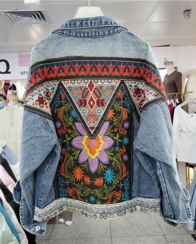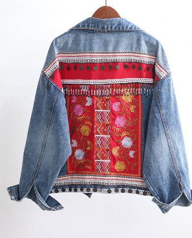Boho Embroidery Denim Jacket Women Tassel Patch Outerwear Vintage Casual