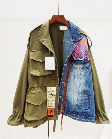 Patchwork Women Denim Jacket Khaki Denim Jacket Womens