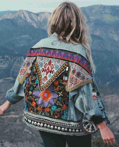 Spring Loose Vintage Ethnic Embroidery Tassel Jeans Jacket 2022 New