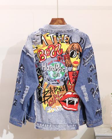 Fashion Graffiti Hip Hop Jean Jacket Women Autumn Denim Jackets
