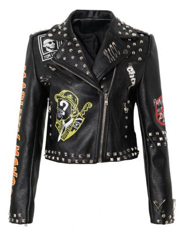 Women Graffiti Rivet Motorcycle Jackets Faux Leather Jacket Punk Style