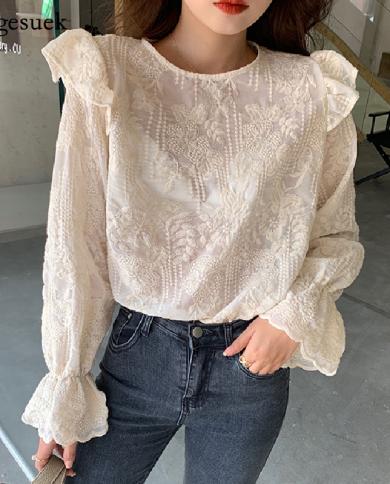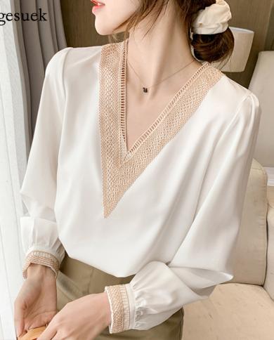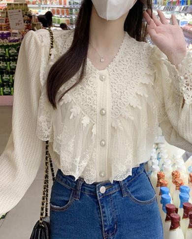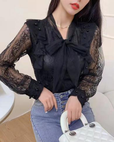 Long Sleeve Women Blouse Elegant Casual Loose Fashion Lace Shirt