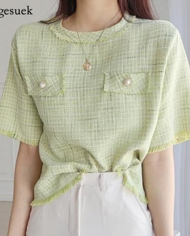 Coarse Woven Short Sleeve Summer Tops Women Fashion O