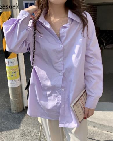 Purple Cotton Loose Blouse Women Casual Tops Chic Back Button