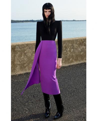 2022 New Summer Women Long Sleeved Bandage Dress Round