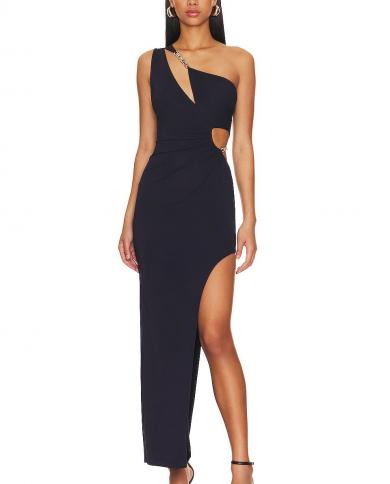 Ciemiili Long Bandage Dress Ladys One Shoulder Hollow Out Split