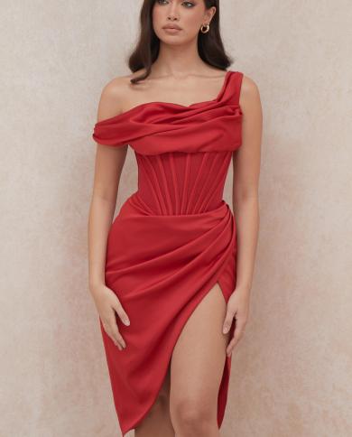 2022 New Summer Women Dress Fashion One Shoulder Asymmetric Split