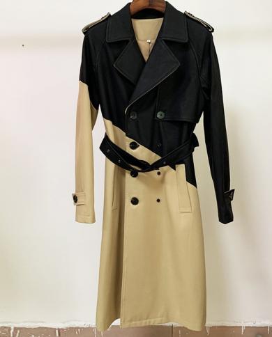 Khaki Long Trench Coat Women New Autumn Winter Asymmetrical