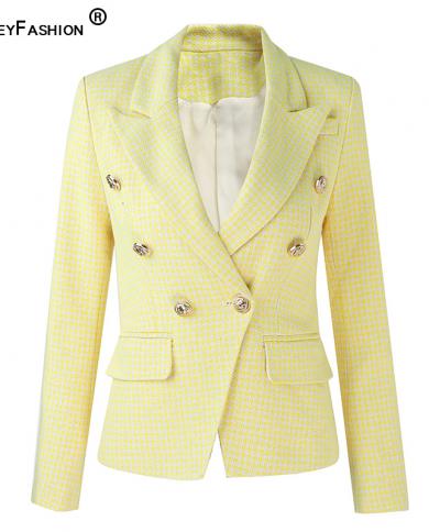 Harleyfashion New Fall Winter Luxury Thick Fabric Houndstooth Pattern Yellow