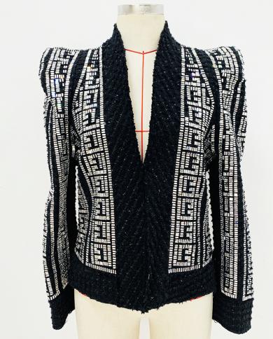Harleyfashion Women Luxury Design Bling Bling Sequined Black Long Blazer