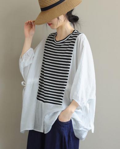 New Summer Arts Style Women Short Sleeve Striped Vintage T