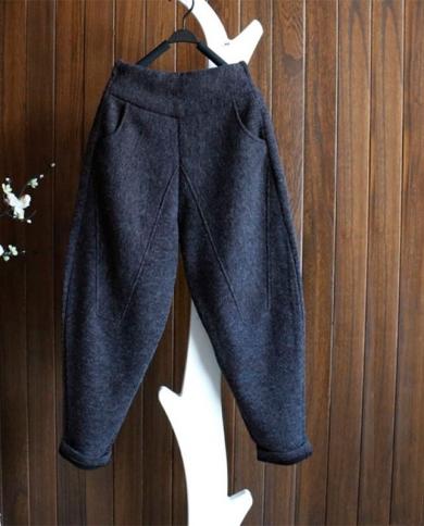 Autumn Winter New Arts Style Women Elastic Waist Loose Pants