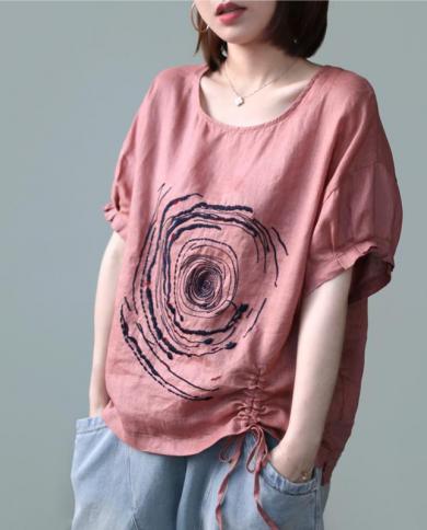 2022 Spring Summer New Arts Style Women Short Sleeve Loose