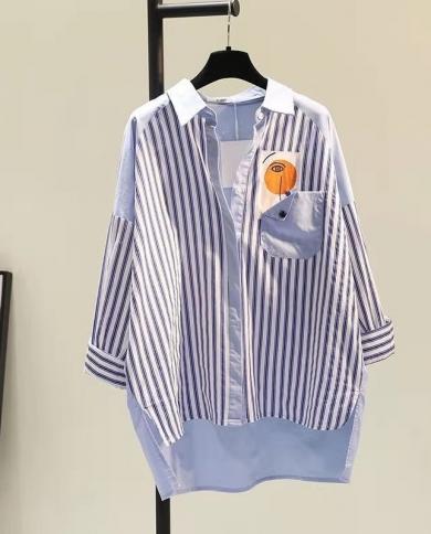 New Arrival Springautumn Women Casual Loose Striped Cotton Turn