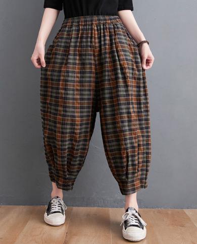 Autumn Winter New Arts Style Women Elastic Waist Harem Pants