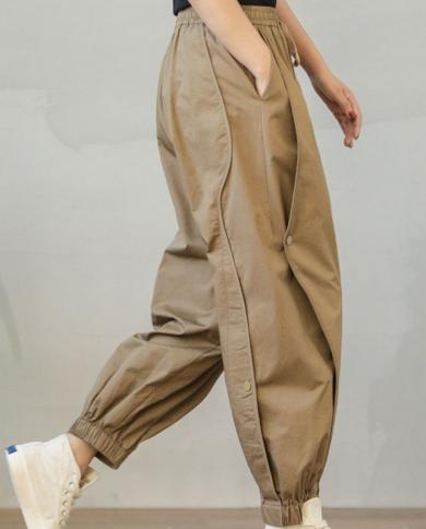 Spring Summer Arts Style Women Elastic Waist Harem Pants Vintage