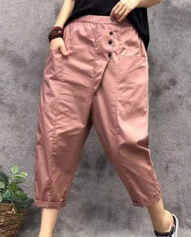 Spring Summer Arts Style Women Elastic Waist Anklelength Loose Pants