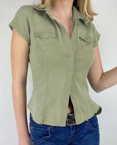 Tetyseysh Women Vintage Shirt Summer Slim Fit Solid Color Short