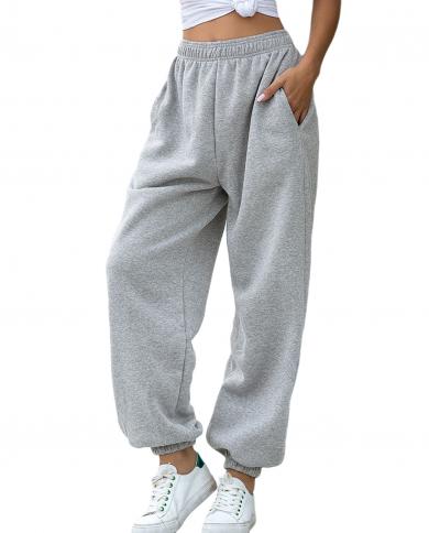 Women Sweatpants Jogger Pants Soft Plush Solid Color High Waist
