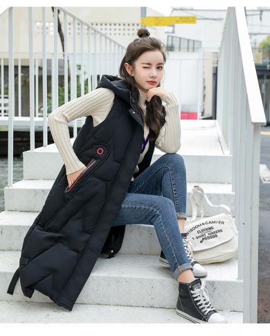 Women Sleeveless Down Coat Fashion Long Down Vest Hooded Jacket