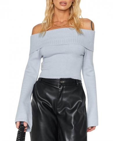 Tetyseysh Women Off Shoulder Sweater Fairy Grunge Ribbed Knit Slim