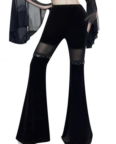 Tetyseysh Flare Pants Women High Waist Long Trousers See Through