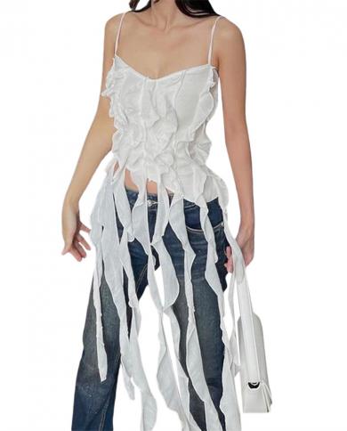 Tetyseysh Womens New Fashion Irregular Ruffle Camisole Summer Slim Solid