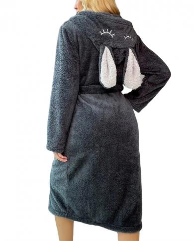 Coral Fleece Long Robe Kimono Sleepwear Lingerie Thicken Solid Color
