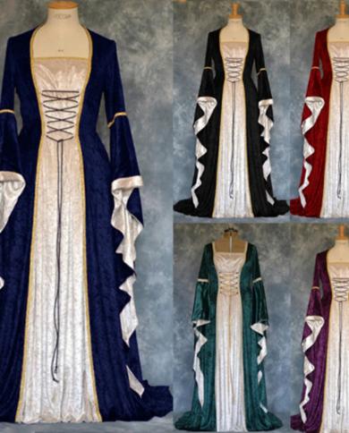 Women Medieval Velvet Retro Court Princress Cosplay Costume Long