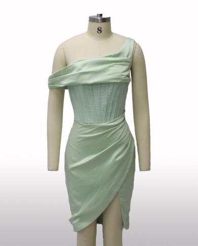 2022 New Summer Women Sleeveless Midi Dress One Shoulder