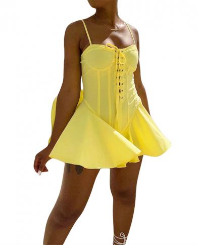 Women Sleeveless Summer Short Dress Tight Straps Solid Color