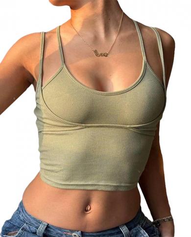 Tetyseysh New Double Spaghetti Strap Crop Tops Women Backless