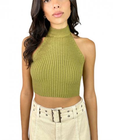 Tetyseysh Women Ribbed Knit Turtleneck Tank Top Backless Sleeveless