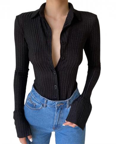 Tetyseysh Women Solid Color Long Sleeve Tops Slim Low Cut
