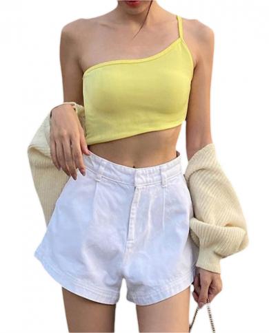 Tetyseysh Women One Shoulder Crop Tops Solid Color Spaghetti